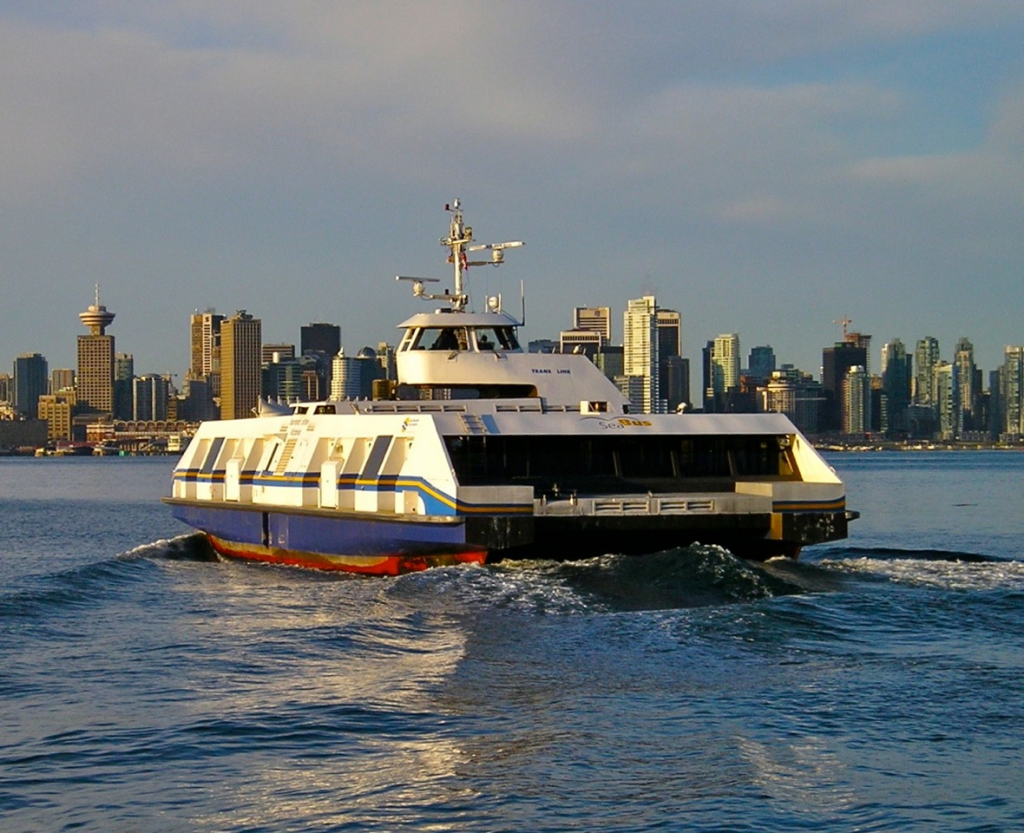 The SeaBus is our passenger ferry that crosses the Burrard Inlet, connecting Downtown Vancouver to North Vancouver. Each ferry can seat up to 395 passengers at a time, and departs every 15 minutes during the day. It takes a short 12 minutes to cross the Inlet. The SeaBus runs seven days a week from early in the morning to late at night.